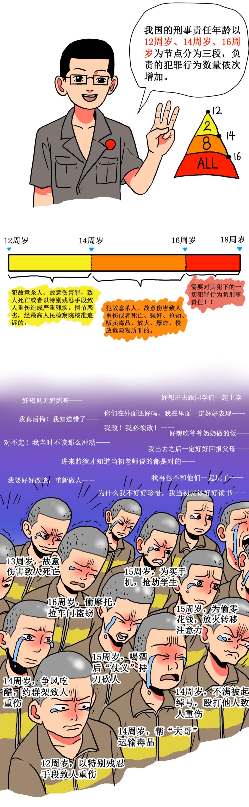| 未成年人犯罪,需要坐牢吗? 未成年人违法,能被拘留吗? 未成年人需要对哪些行为负责? 未成年人犯错需要付出怎样的代价? ...... 今天让我们通过一篇漫画来学习一下吧~